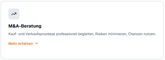 "Sehr umfangreiche und zeitlich flexible Betreuung auf höchstem Niveau! Vielen Dank für das Begleiten bei der Übernahme eines Unternehmens. Gerne wieder!"